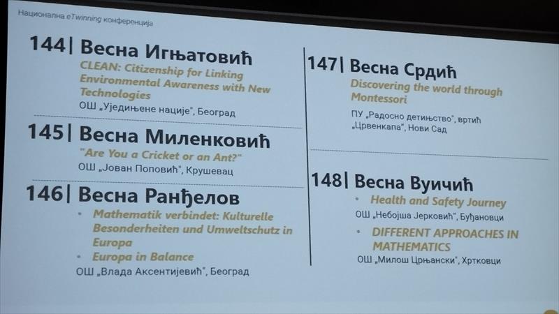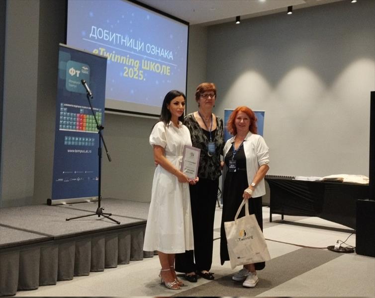 04.октобар.2025 еТwinning конференцијa у Београду Десетогодишњица eTwinnig у Србији Представници наше школе присуствовали националној еТwinning конференцији у Београду 24. септембра 2025. Овогодишња конференција је била слављеничког карактера и обележено је 10 година eTwinning-a у Србији. Наша школа је награђена ознаком eTwinnig school а награду за школу су примиле педагог школе Бојана Милутиновић и наставница немачког језика Весна Ранђелов. Националним ознакама квалитета за 2 пројекта „Mathematik verbindet: Kulturelle Besonderheiten und Umweltschutz in Europa“ и "Europa in Balance"која су спроведена у нашој школи награђена је наставница Весна Ранђелов. Школа је препозната као установа која квалитетним и посвећеним радом доприноси развоју образовно-васпитног рада што ова признања и потврђују.