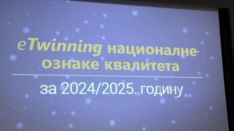 04.октобар.2025 еТwinning конференцијa у Београду Десетогодишњица eTwinnig у Србији Представници наше школе присуствовали националној еТwinning конференцији у Београду 24. септембра 2025. Овогодишња конференција је била слављеничког карактера и обележено је 10 година eTwinning-a у Србији. Наша школа је награђена ознаком eTwinnig school а награду за школу су примиле педагог школе Бојана Милутиновић и наставница немачког језика Весна Ранђелов. Националним ознакама квалитета за 2 пројекта „Mathematik verbindet: Kulturelle Besonderheiten und Umweltschutz in Europa“ и "Europa in Balance"која су спроведена у нашој школи награђена је наставница Весна Ранђелов. Школа је препозната као установа која квалитетним и посвећеним радом доприноси развоју образовно-васпитног рада што ова признања и потврђују.