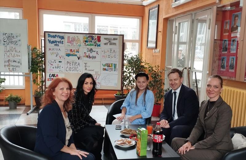 04.октобар.2025 Победница Томболе Европског дана језика У Основној школи Влада Аксентијевић, ученица Нађа Петровић 6/3 примила је награду од амбасадора Словачке Републике у Београду господина Михала Павука. Награђена је за своје активно учешће у активностима поводом Европског дана језика. У име школе срдачну добродошлицу амбасадору Михалу Павуку приредиле су педагог школе Бојана Милутиновић, наставница немачког језика Весна Ранђелов и разредни старешина 6/3 Тамара Симић. Наставница Драгана Вучићевић припремила је нумеру са школском хором који је поздравио амбасадора песмом на српском језику, а Нађа је рецитовала песму на немачком језику. Честитамо срећној добитници!